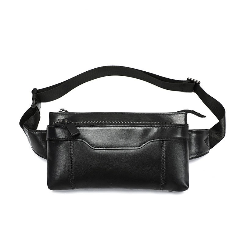 & Free ShippingBlack leather sling bag,rectangle shape,calfskin leather,two main pockets,zipper pocket on front and back,good to classify your things