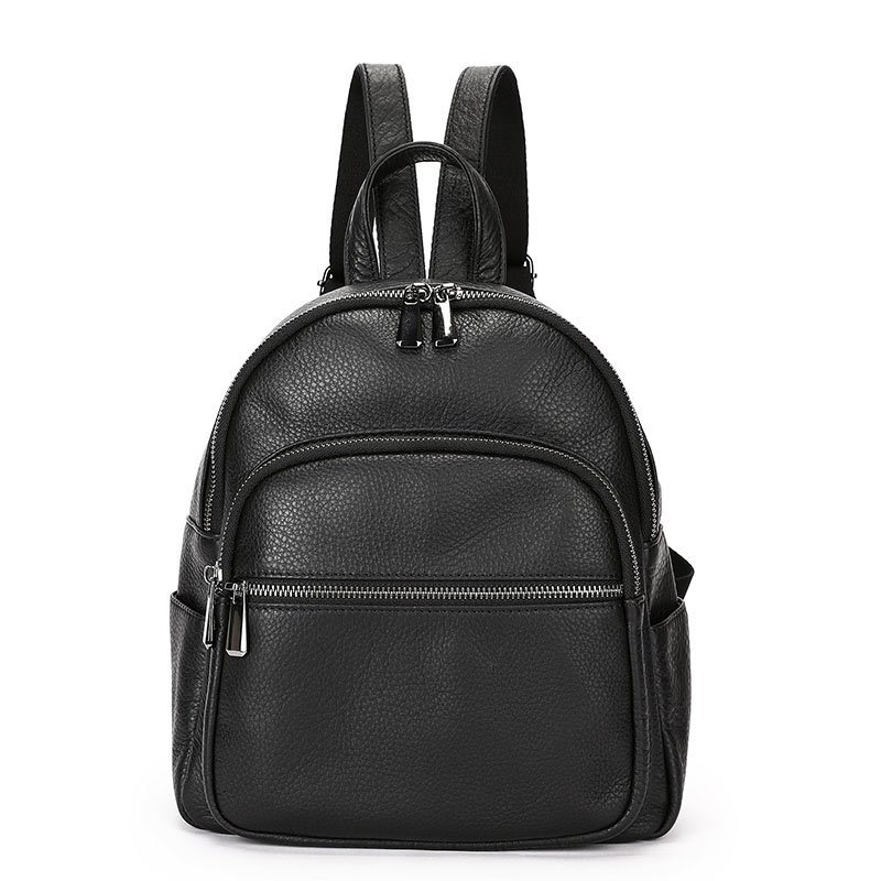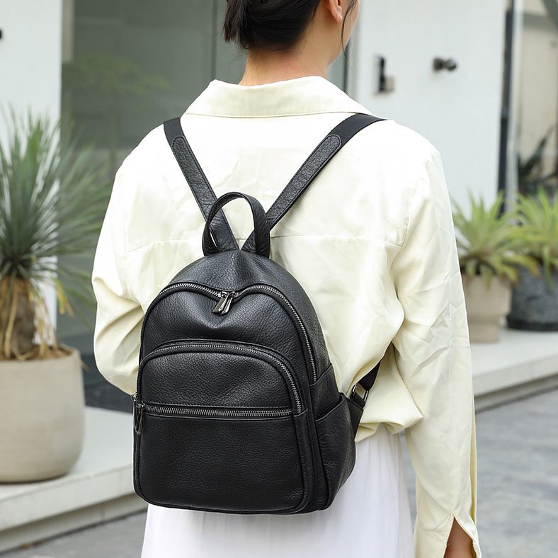 Black Leather Medium Backpack for Women