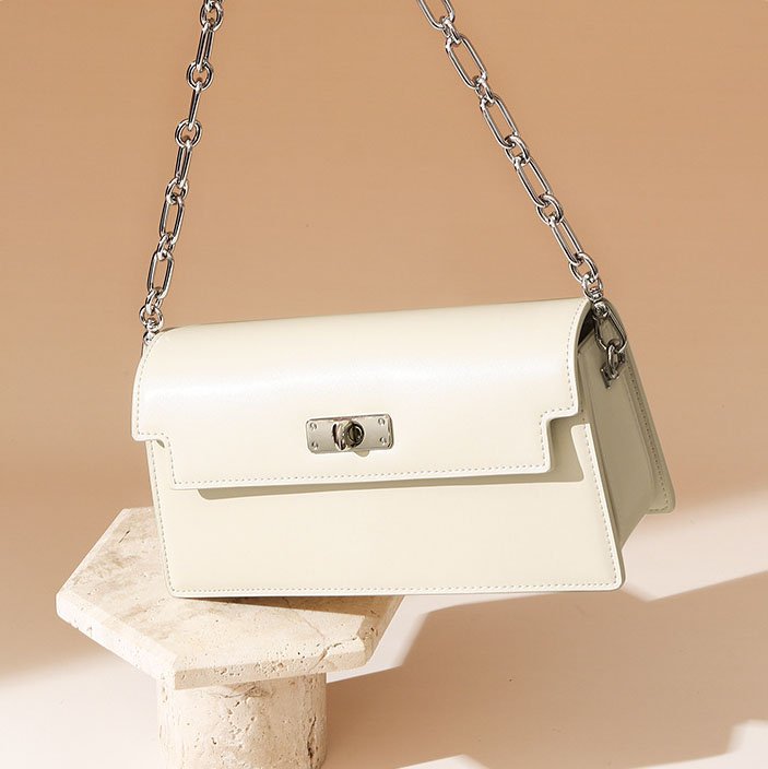Be the first to review “Box Calf Leather Crossbody Bag with Metal Chain White”