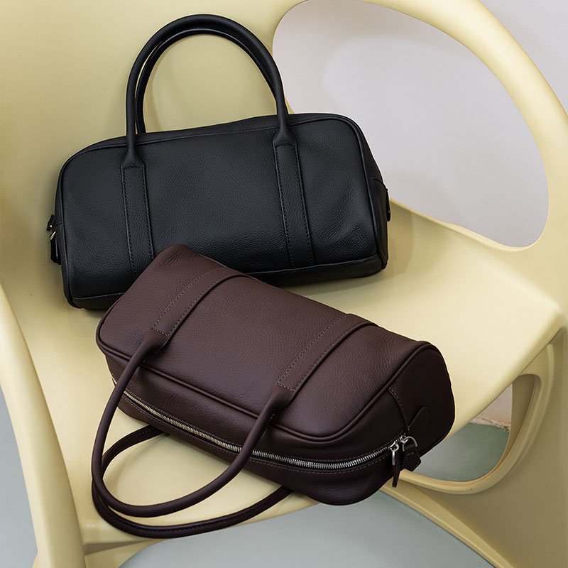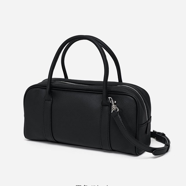 & Free ShippingLeather Bowling Bag,full grain calfskin,near cuboid shape,double zipper pullers,detachable long leather strap,for work or in the streets