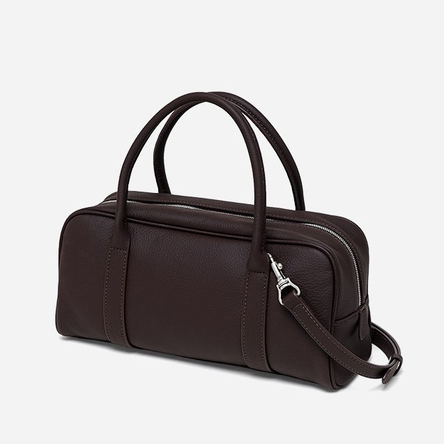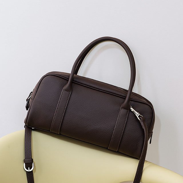 & Free ShippingLeather Bowling Bag,full grain calfskin,near cuboid shape,double zipper pullers,detachable long leather strap,for work or in the streets