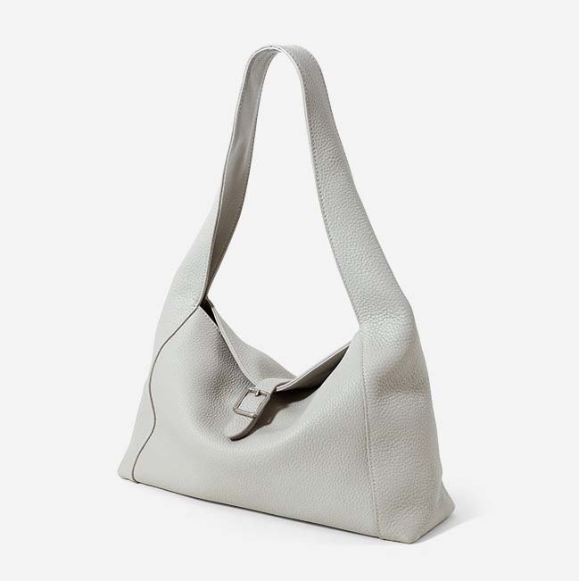 Full Grain Leather Hobo Bag with Small Flap Grey