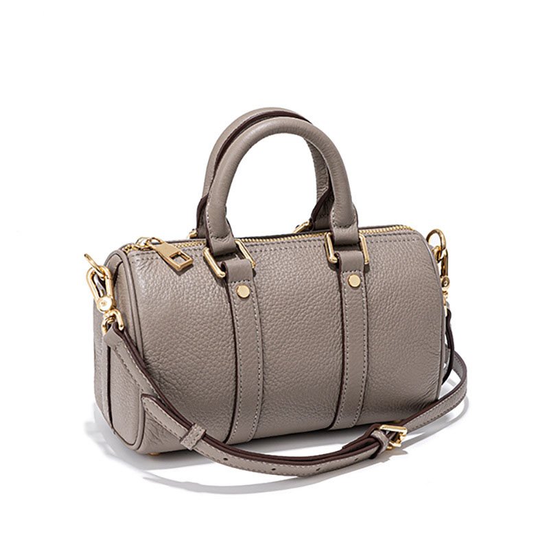 Full Grain Leather Small Boston Bag Grey