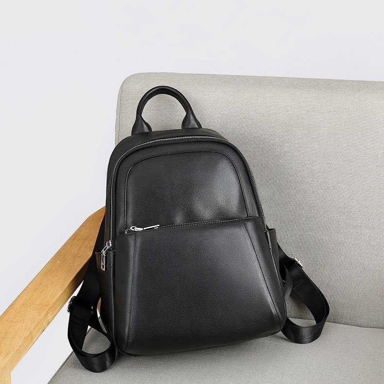 Black Leather Backpack for women,in top genuine leather,calfskin leather.