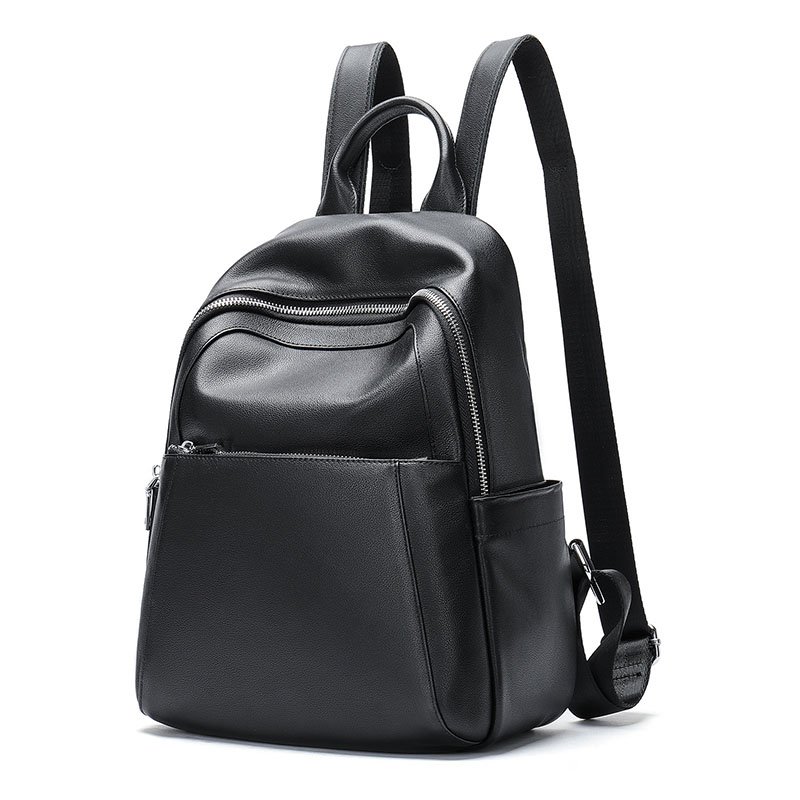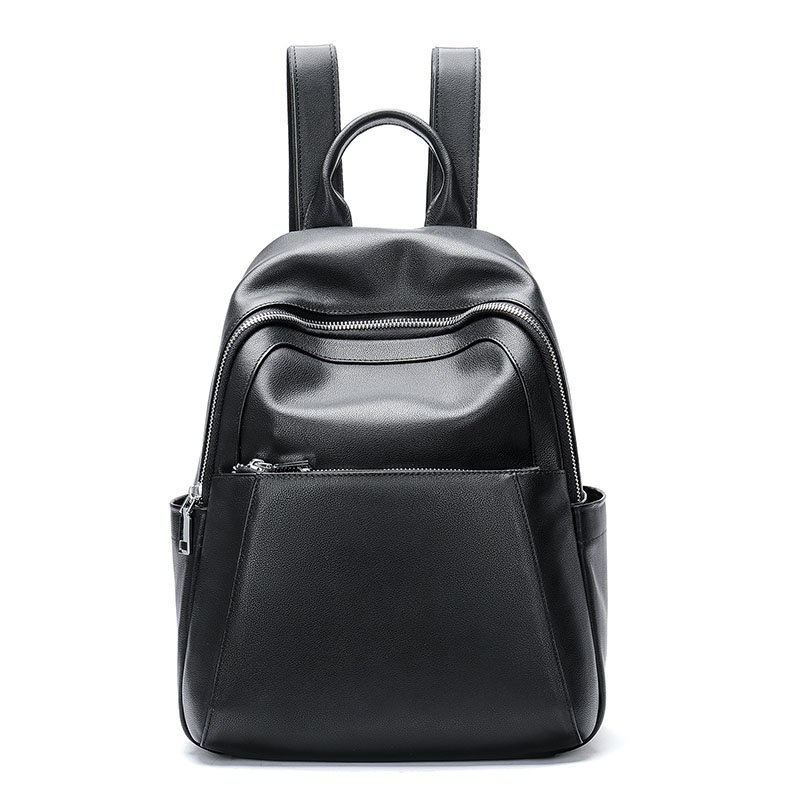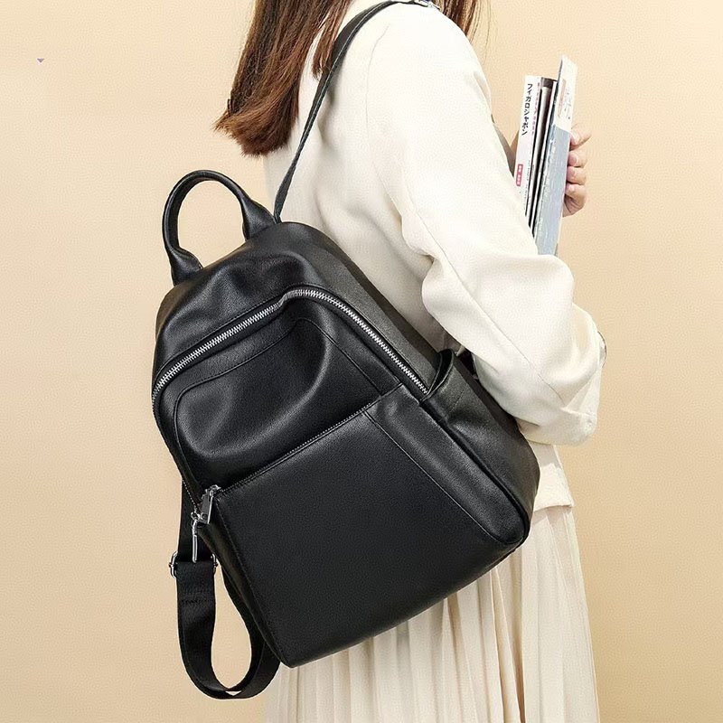 & Free ShippingBlack Leather Backpack for women,multi pockets on front,back and gussets,Genuine leather,large capacity,fit for 9.7 inch ipad,umbrella,A4 documents.