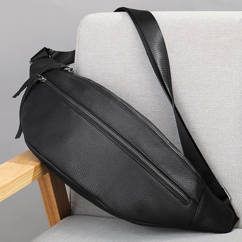 Pebble Leather Large Sling Bag Black