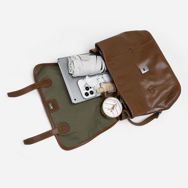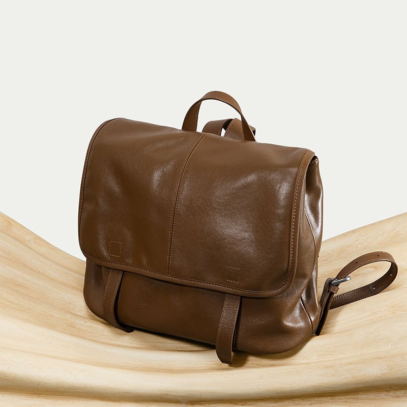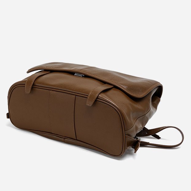 Vegetable Tanned Leather Backpack with Flap Brown