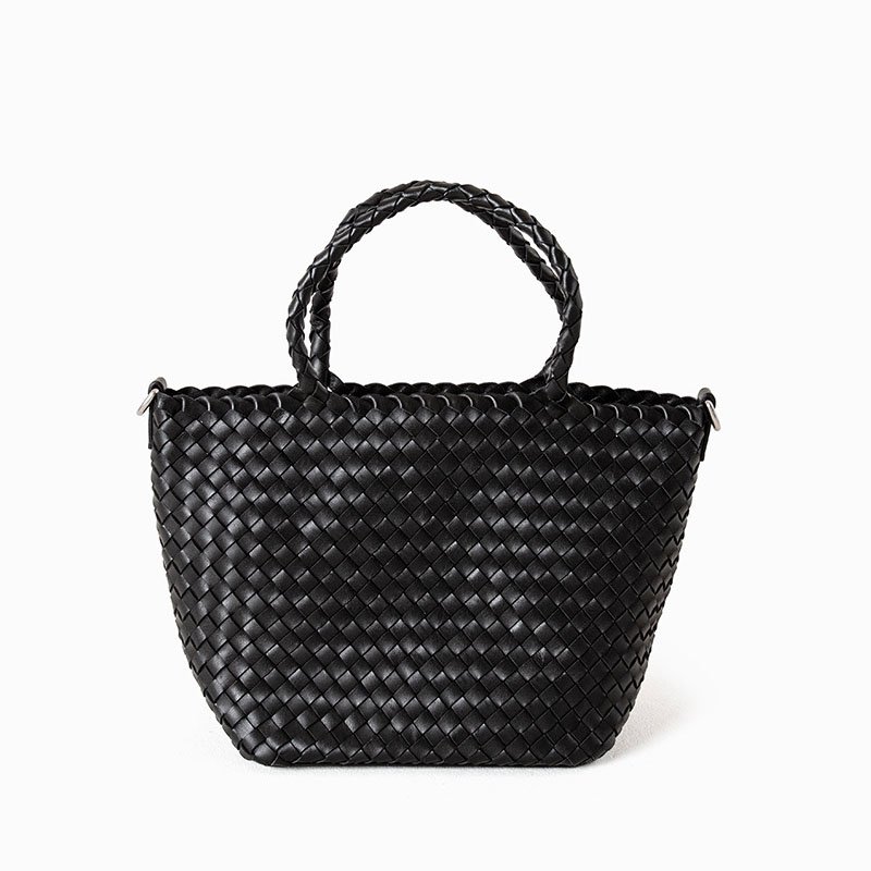 Woven Leather Small Tote Bag with Braid Handle Black